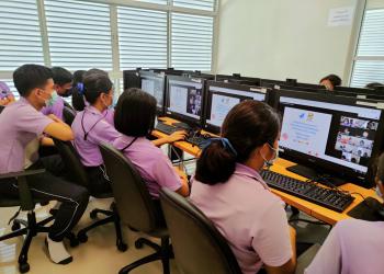 วันที่ 16 กุมภาพันธ์ 2564 โรงเรียนตะเครียะวิทยาคม โดย ศูนย์ครอบครัวพอเพียง เข้าร่วมอบรมหลักสูตรออนไลน์ครอบครัวพอเพียง รุ่นที่ (2) ในหลักสูตรวิทยากรกระบวนการสื่อสร้างสรรค์ รู้เท่าทันโลกโซเชียลมีเดีย (สำหรับนักเรียนม.5-6 และนักเรียนม.4 ที่ผ่านหลักสูตรที่ 1 หรือเคยร่วมการอบรมกับมูลนิธิแล้ว) โดยการอบรมในครั้งนี้มีนักเรียนเข้าร่วมอบรมออนไลน์ จำนวน 16 คน ณ อาคาร USO NET กสทช. โรงเรียนตะเครียะวิทยาคม อำเภอระโนด จังหวัดสงขลา