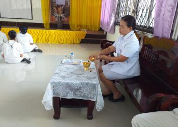 วันพุธ ที่ 17 กุมภาพันธ์ 2564 ผู้อำนวยการโรงเรียน พร้อมด้วยคณะครูและนักเรียน เข้าร่วมกิจกรรมวันธรรมสวนะของโรงเรียน เพื่อส่งเสริมให้นักเรียนและบุคลากร ได้ปฏิบัติตนตามหลักของพระพุทธศาสนา ซึ่งทำเป็นประจำในทุกวันพุธ โดยมีนักเรียนชั้น ม.3 เป็นตัวแทนมัคนายกน้อย นำสวดมนต์ในครั้งนี้ ณ ศูนย์เรียนรู้พระธรรมเมธาจารย์ โรงเรียนตะเครียะวิทยาคม ตำบลตะเครียะ อำเภอระโนด จังหวัดสงขลา
