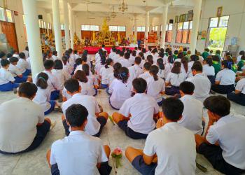 วันที่ 25 กุมภาพันธ์ 2564 นำโดยผู้อำนวยการโรงเรียน คณะครูและนักเรียน ร่วมกิจกรรมวันมาฆบูชา ในปีนี้ตรงกับ วันศุกร์ที่ 26 กุมภาพันธ์ พ.ศ.2564 ขึ้น ๑๕ ค่ำ เดือนสี่(๔) ปีชวด เนื่องในโอกาสคล้าย วันที่พระภิกษุ ๑,๒๕๐ รูป มาประชุมกันโดยมิได้นัดหมาย ในการทำกิจกรรมครั้งนี้ มีนักเรียนโรงเรียนชุมชนวัดบ้านขาวเข้าร่วมด้วย ณ วัดบ้านขาว ตำบลบ้านขาว อำเภอระโนด จังหวัดสงขลา