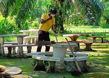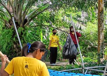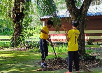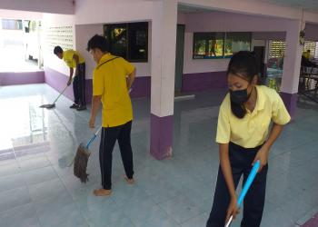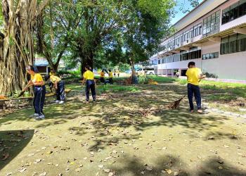 จัดกิจกรรมจิตอาสาบำเพ็ญสาธารณประโยชน์โดยการทำความสะอาดบริเวณโดยรอบของโรงเรียนตะเครียะวิทยาคม