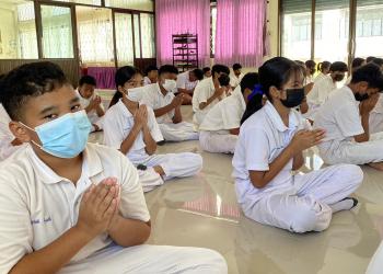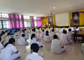 วันที่ 7 ธันวาคม 2565 นางสาวชุฏิมา อินทร์จันทร์ ผู้อำนวยการโรงเรียนตะเครียะวิทยาคม พร้อมด้วยคณะครูและนักเรียนโรงเรียนตะเครียะวิทยาคม เข้าร่วมกิจกรรมวันธรรมสวนะของโรงเรียนโดยกิจกรรมจัดขึ้นในทุกวันพุธ เพื่อส่งเสริมให้นักเรียนและบุคลากร ได้ปฏิบัติตนตามหลักของพระพุทธศาสนาและพุทธศาสนนิกชน โดยมีนักเรียนชั้น ม.2 เป็นตัวแทนมัคนายกน้อยเป็นผู้นำสวดมนต์และประกอบพิธีการต่าง ในครั้งนี้ ณ ศูนย์เรียนรู้พระธรรมเมธาจารย์ โรงเรียนตะเครียะวิทยาคม ตำบลตะเครียะ อำเภอระโนด จังหวัดสงขลา