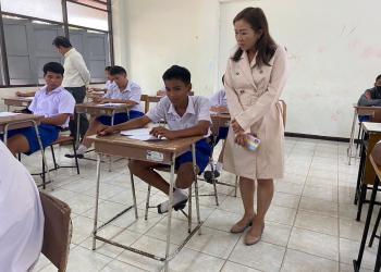 ผู้อำนวยการโรงเรียน นางสาวสาลินี จงใจสุรธรรม รองผู้อำนวยการโรงเรียนตะเครียะวิทยาคม ตรวจเยี่ยมห้องสอบพร้อมทั้งให้กำลังใจนักเรียนระหว่างดำเนินการสอบ การสอบปลายภาคครั้งนี้เป็นไปด้วยความเรียบร้อย