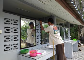 วันที่ 7 พฤษภาคม 2567 นายวิชัย สุริพล ผู้อำนวยการโรงเรียน มอบหมายคณะครู และนักเรียนโรงเรียนตะเครียะวิทยาคมร่วมกันทำควาามสะอาดพื้นที่ห้องน้ำของโรงเรียน เพื่อเตรียมพร้อมรองรับการเปิดภาคเรียนที่ 1/2567 ตามโครงการสุขาดี