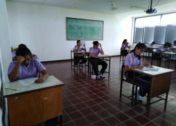 วันอังคารที่ 4 กุมภาพันธ์ 2563 นักเรียนชั้นมัธยมศึกษาปีที่ 6 สอบ Pre Test วัดความรู้ของนักเรียนก่อนจะสอบจริงในเดือนมีนาคม 2563