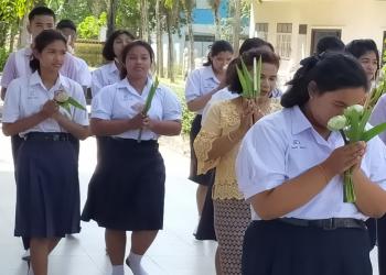 วันที่ 7 กุมภาพันธ์ 2563 โรงเรียนตะเครียะวิทยาคม นำโดยคณะครูและนักเรียนชั้นมัธยมศึกษาตอนปลาย เข้าร่วมกิจกรรมเวียนเทียนเนื่องในวันมาฆบูชาที่จะมาถึง ในวันที่ 8 กุมภาพันธ์ 2563 ณ วัดบ้านขาว ตำบลบ้านขาว อำเภอระโนด จังหวัดสงขลา
