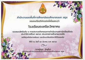 กิจกรรมการดำเนินงานสภานักเรียนดีเด่น ประจำปีการศึกษา 2563 ประเภทสถานศึกษาขนาดเล็ก ได้รับรางวัล รองชนะเลิศอันดับ 1