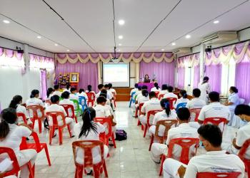 ให้ความรู้เกี่ยวกับการป้องกันและแก้ไขปัญหายาเสพติดในสถานศึกษา โดยบูรณาการร่วมกับโครงการเฝ้าระวังป้องกันและแก้ไขปัญหาการแพร่ระบาดของโรคติดต่ออุบัติใหม่ในคนเชื้อไวรัสโคโรนา 2019 (COVID-19)