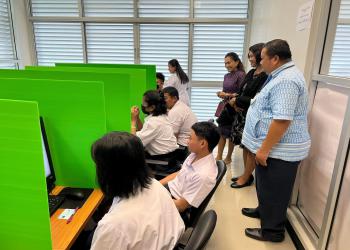 วันที่ 1 มีนาคม 2566 โรงเรียนตะเครียะวิทยาคม เป็นสนามการทดสอบทางการศึกษาระดับชาติขั้นพื้นฐาน (o-net) ระดับชั้นมัธยมศึกษาปีที่ 6 ประจำปีการศึกษา 2565 ด้วยระบบดิจิทัล (Digital Testing) โดยมี นางเปรมจิต กล่อมสุข ศึกษานิเทศก์ และนางสุนันทา สุวรรณะ ศึกษานิเทศก์ สำนักงานเขตพื้นที่การศึกษามัธยมศึกษาสงขลา สตูล เข้าเยี่ยมและให้กำลังใจ มีนางสาวชุฏิมา อินทร์จันทร์ ผู้อำนวยการโรงเรียนตะเครียะวิทยาคม พร้อมด้วยคณะกรรมการระดับสนามสอบให้การต้อนรับ การดำเนินการสอบ O-NET นักเรียนชั้นมัธยมศึกษาปีที่ 6 ปีการศึกษา 2565 จำนวนนักเรียนเข้าสอบทั้งหมด 14 คน คิดเป็น 100 เปอร์เซ็น โดยจะดำเนินการสอบตั้งแต่วันที่ 1-2 มีนาคม 2566 ณ โรงเรียนตะเครียะวิทยาคม อำเภอระโนด จังหวัดสงขลา