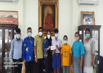 นายวัฒนา ถนอมศักดิ์ ผอ.โรงเรียนมหาวชิราวุธ จังหวัดสงขลา และ นายอนันต์ ผุดเกตุ ผอ.โรงเรียนวรนารีเฉลิม จังหวัดสงขลา เป็นตัวแทนมอบ ทุนการศึกษา ให้แก่ เด็กชายสมพงษ์ ดำกลิ่น ใน “โครงการเป็นผู้ให้ในวันเกิด”