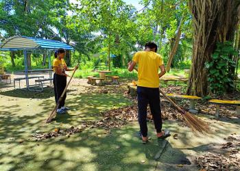 จัดกิจกรรมจิตอาสาบำเพ็ญสาธารณประโยชน์โดยการทำความสะอาดบริเวณโดยรอบของโรงเรียนตะเครียะวิทยาคม