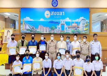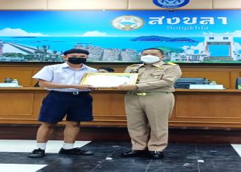 รับรางวัลอันดับ 1 ประเภทนักเรียน ประกวดคลิปวีดีโอ หัวข้อ "สงขลา เมืองกีฬา"