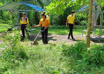 จัดกิจกรรมจิตอาสาบำเพ็ญสาธารณประโยชน์โดยการทำความสะอาดบริเวณโดยรอบของโรงเรียนตะเครียะวิทยาคม