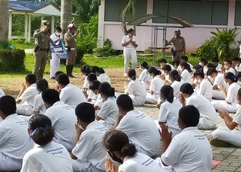 วันพุธ ที่ 19 สิงหาคม 2563 คณะครูและนักเรียนโรงเรียนตะเครียะวิทยาคม ให้การต้อนรับ เจ้าหน้าที่ตำรวจจราจร สภ.ระโนด นำโดย ร.ตอ.ศิริพงศ์ ศิริเรศ รอง สวป. หัวหน้าจราจรระโนด, ดต.สุนทร เรืองศรี ,ส.ต.อ. ศิวัช ชุมศรี ตามโครงการครู 5 นาที หน้าเสาธงและมาตรการ "เปิดโรงเรียนเปิดโรงรถ" โดยให้ความรู้เรื่องกฎหมายจราจร พรบ.จราจรทางบก การขับขี่ วินับจราจร พร้อมทั้งสอบถามปัญหาต่างๆของนักเรียน ณ โรงเรียนตะเครียะวิทยาคม ตำบลตะเครียะ อำเภอระโนด จังหวัดสงขลา โดยได้รับความร่วมมือจากนักเรียนเป็นอย่างดี