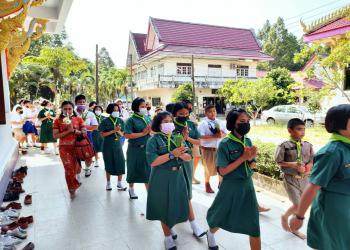 วันที่ 25 กุมภาพันธ์ 2564 นำโดยผู้อำนวยการโรงเรียน คณะครูและนักเรียน ร่วมกิจกรรมวันมาฆบูชา ในปีนี้ตรงกับ วันศุกร์ที่ 26 กุมภาพันธ์ พ.ศ.2564 ขึ้น ๑๕ ค่ำ เดือนสี่(๔) ปีชวด เนื่องในโอกาสคล้าย วันที่พระภิกษุ ๑,๒๕๐ รูป มาประชุมกันโดยมิได้นัดหมาย ในการทำกิจกรรมครั้งนี้ มีนักเรียนโรงเรียนชุมชนวัดบ้านขาวเข้าร่วมด้วย ณ วัดบ้านขาว ตำบลบ้านขาว อำเภอระโนด จังหวัดสงขลา
